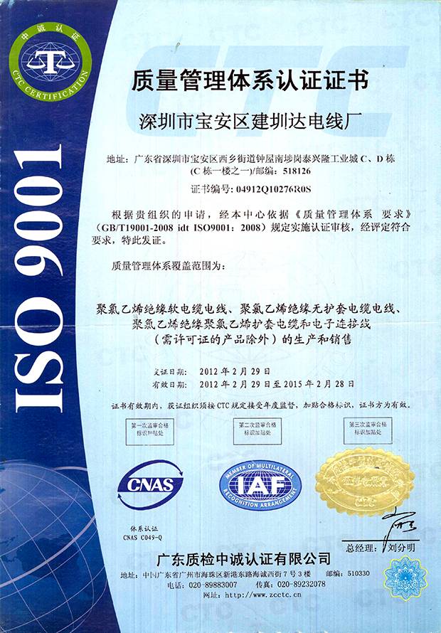 建圳達電纜立足于中國深圳,擁有技術(shù)精湛的隊伍、現(xiàn)代化生產(chǎn)設(shè)備、精密的檢測儀器,從原材料、生產(chǎn)、成品嚴格按照國家標準檢測,通過多個認證。